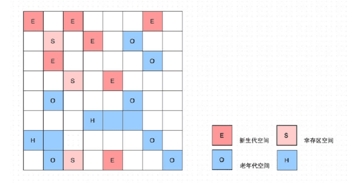 - Survivor 区:该区域划分为 From 和 To 两个区域,存放着 Eden 区经过 GC 后存活的对象,一个区域始终为空,另一个始终没有内存碎片。是为了筛选长命对象而存在的,当有对象放不下的时候会直接进入老生代。